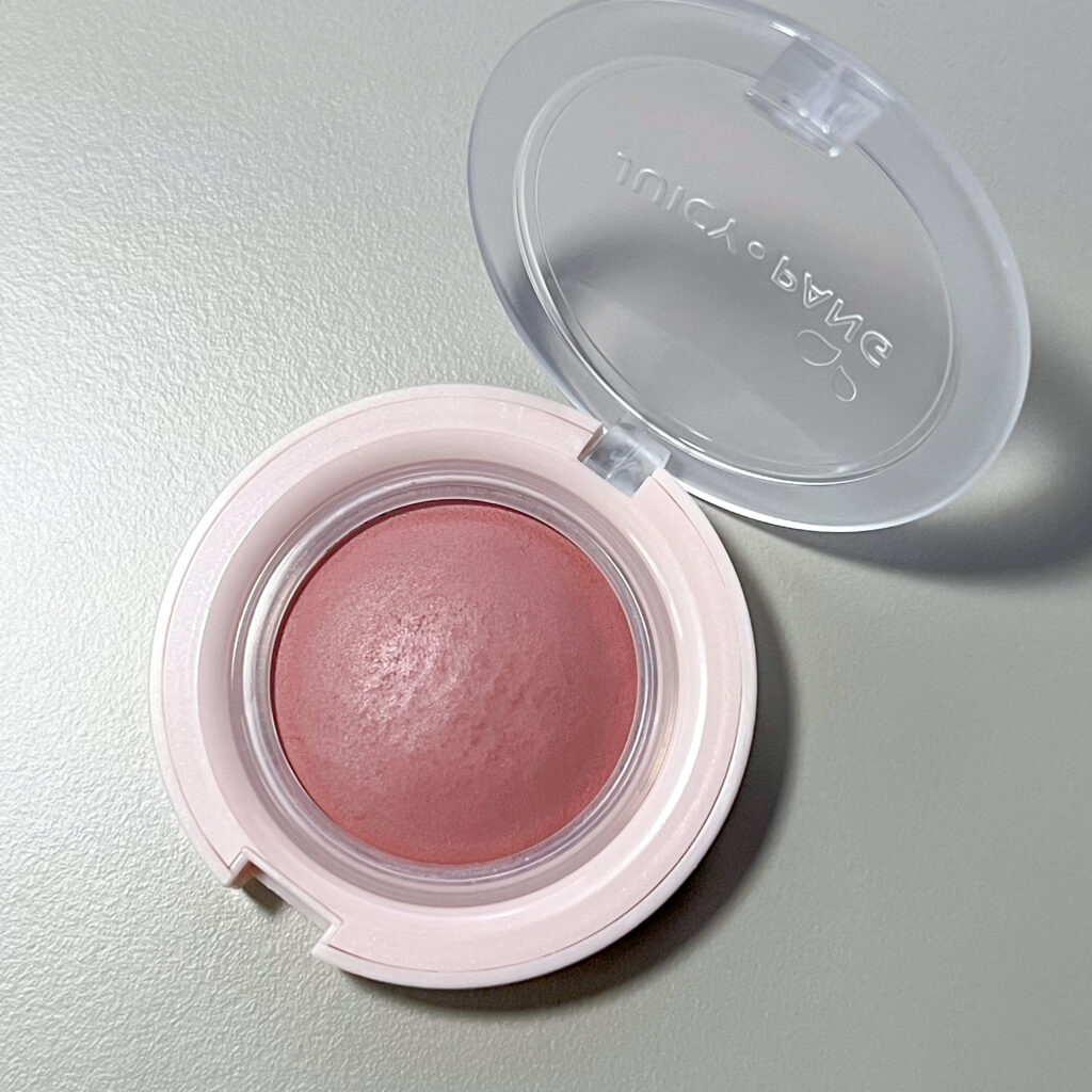 触るとちょっとプニっとした質感で、クリームチークとパウダーチークの間といった感じ。